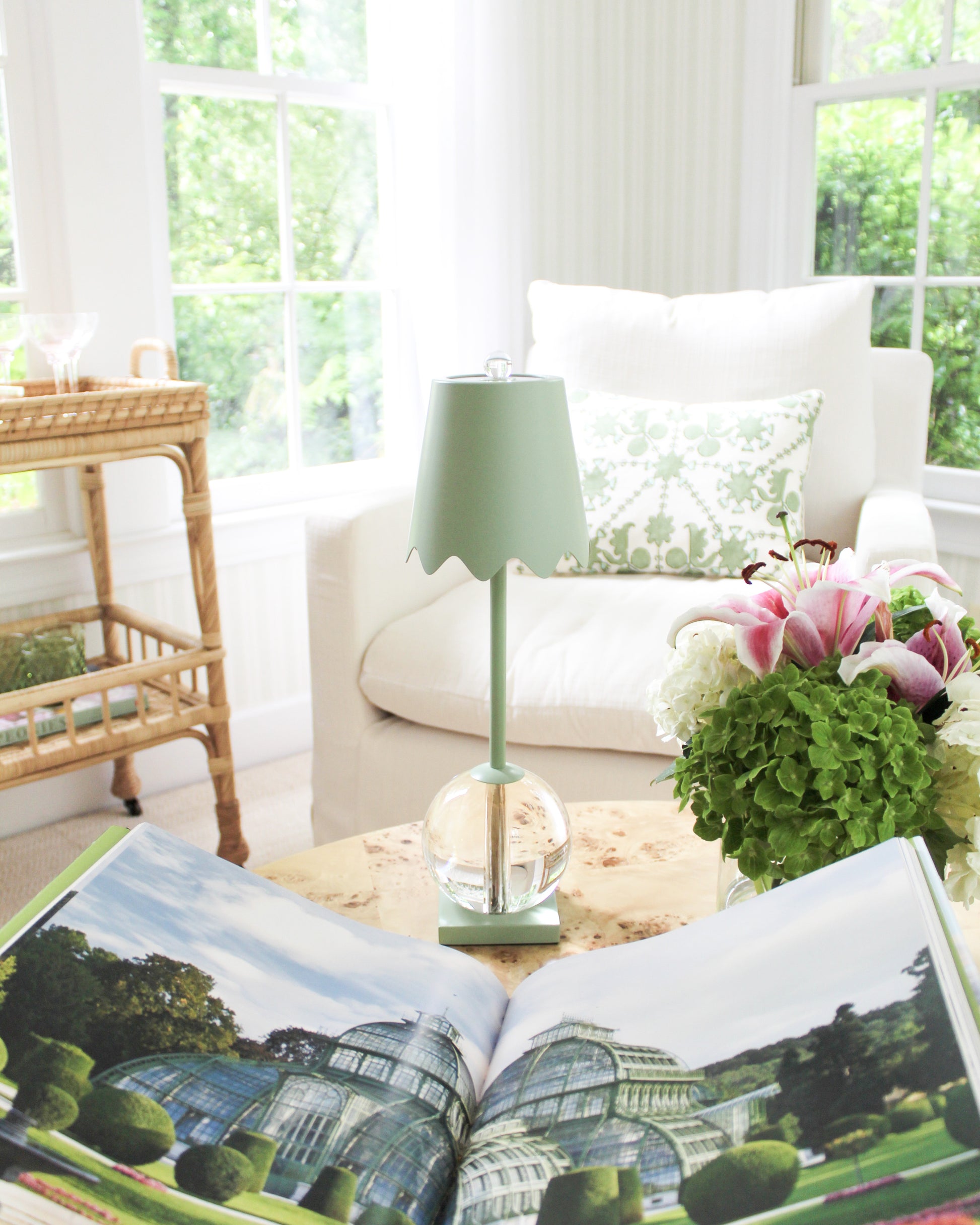 The Eliza Lamp. Where heirloom quality meets modern functionality. This battery operated portable lamp is designed with a unique acrylic knob that seamlessly combines both the on/off switch and dimming function, offering a more intuitive experience compared to the common touchpad controls found on most battery powered lamps. Whether plugged in or on the go, the Eliza Lamp is ideal for any setting. Illuminate your outdoor dinner parties, cozy nooks, nurseries, or any space in your home that needs a touch of warmth and sophistication. With its versatile design, the Eliza Lamp is the perfect lighting solution for both indoors and out.